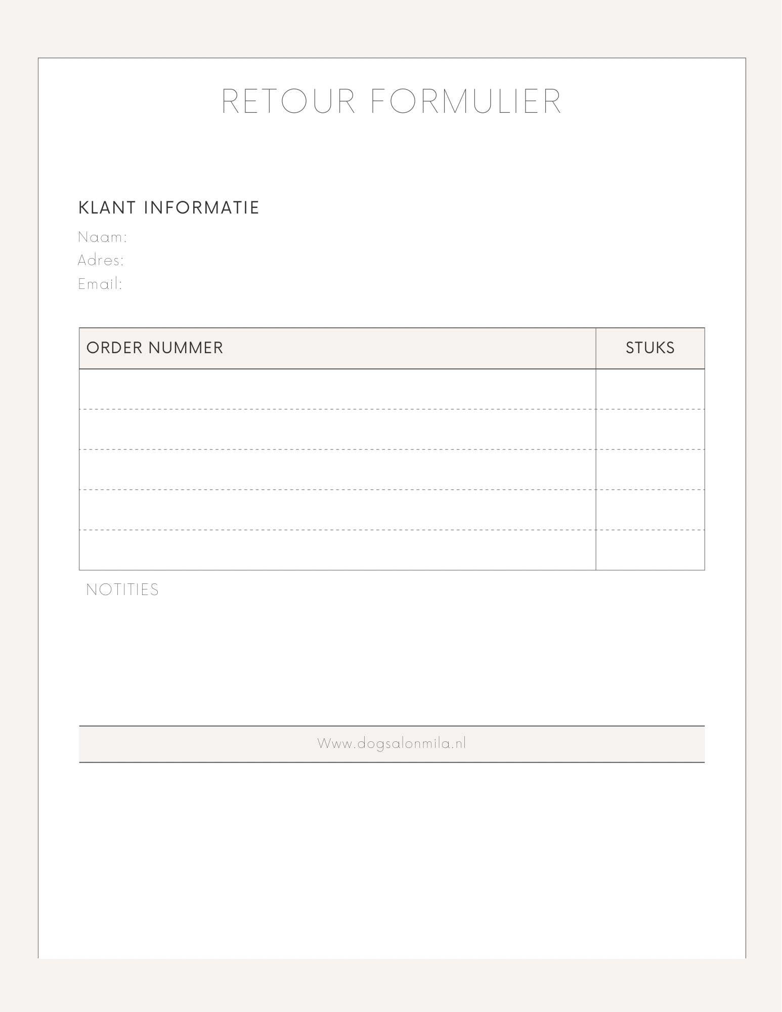Retourneren bij Dogsalonmila